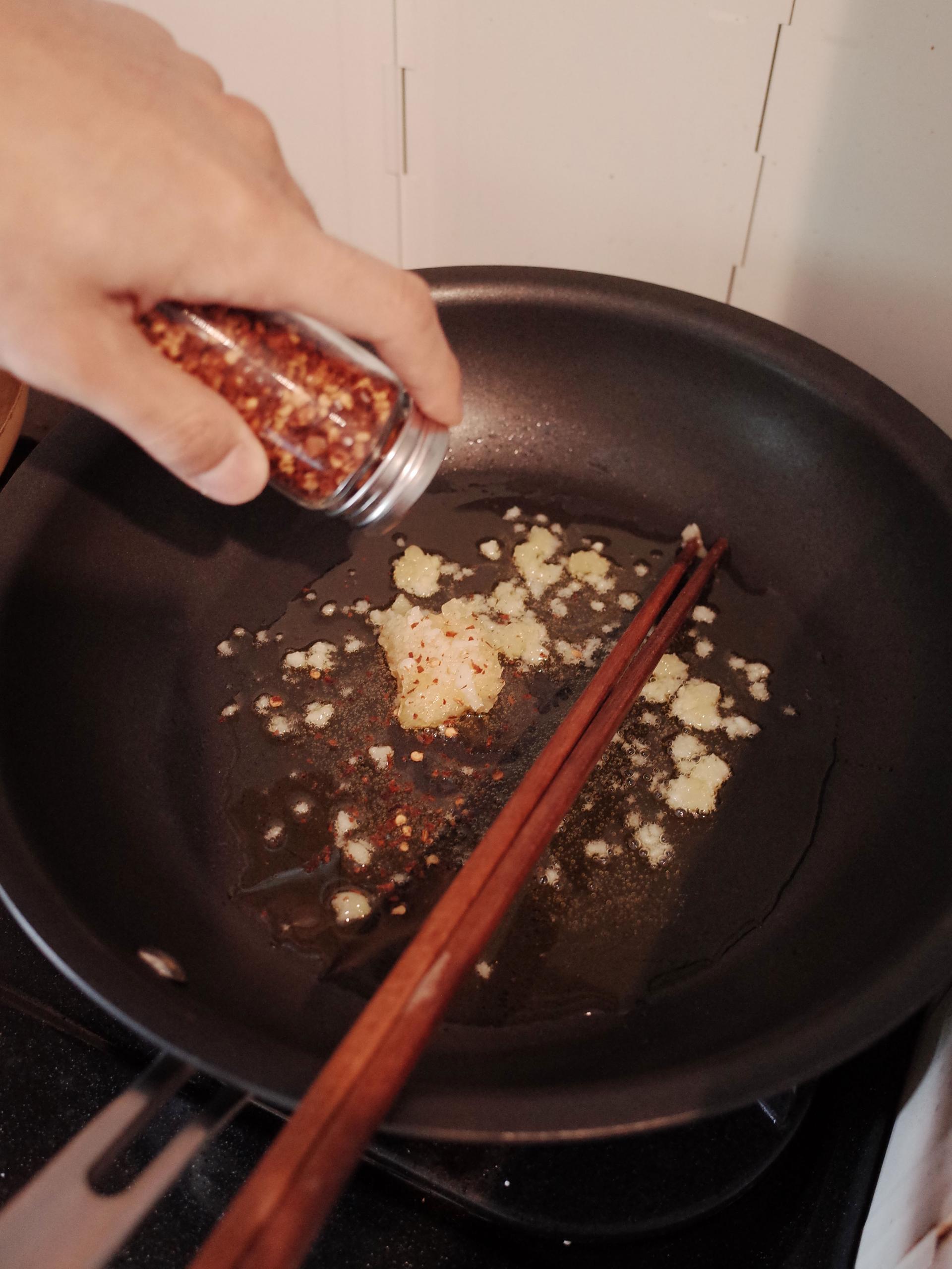 3. 다진 마늘을 볶아주세요.