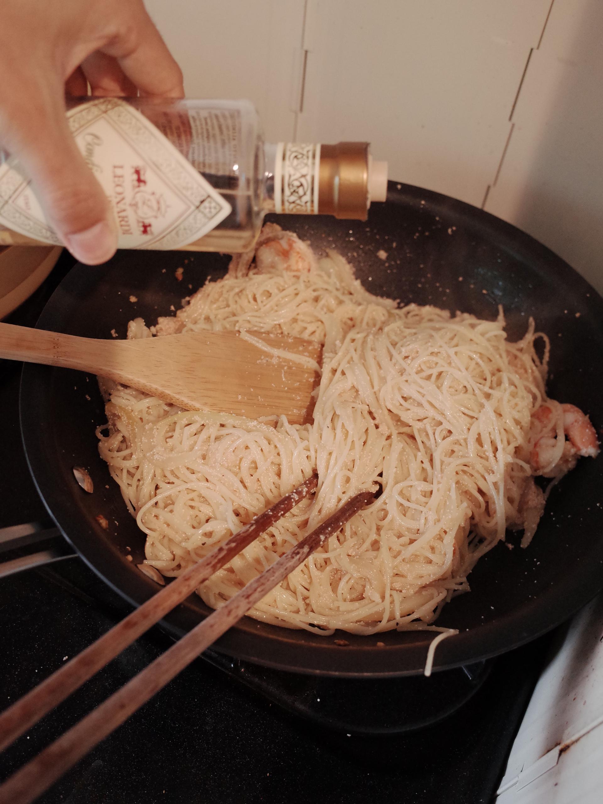 12. 올리브오일을 둘러주면 휘리릭 파스타 완성!