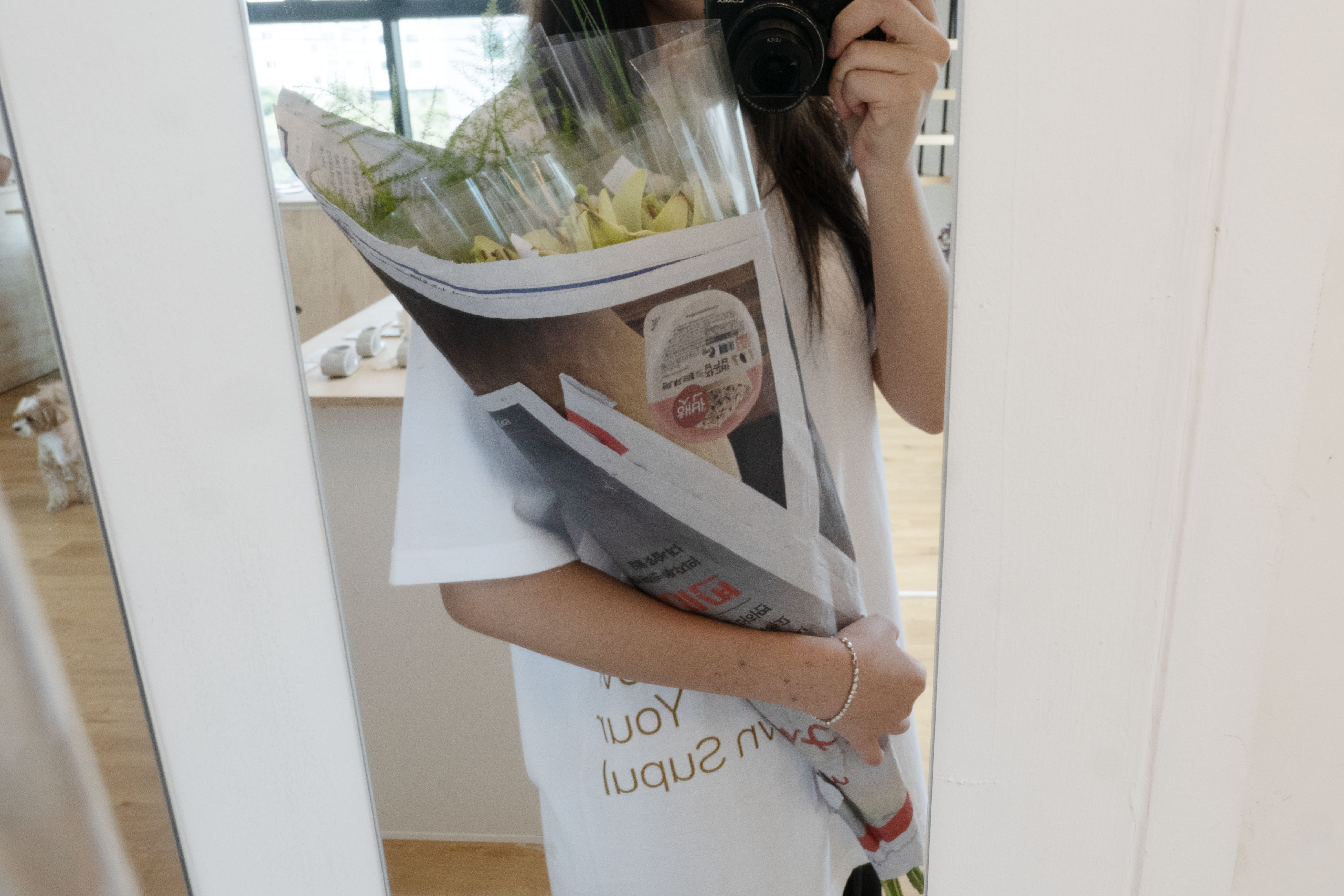 몸에 가볍게 감기는 착용감 덕분에 구입한 꽃을 품에 한가득 안고서도 한결 여유로웠답니다.