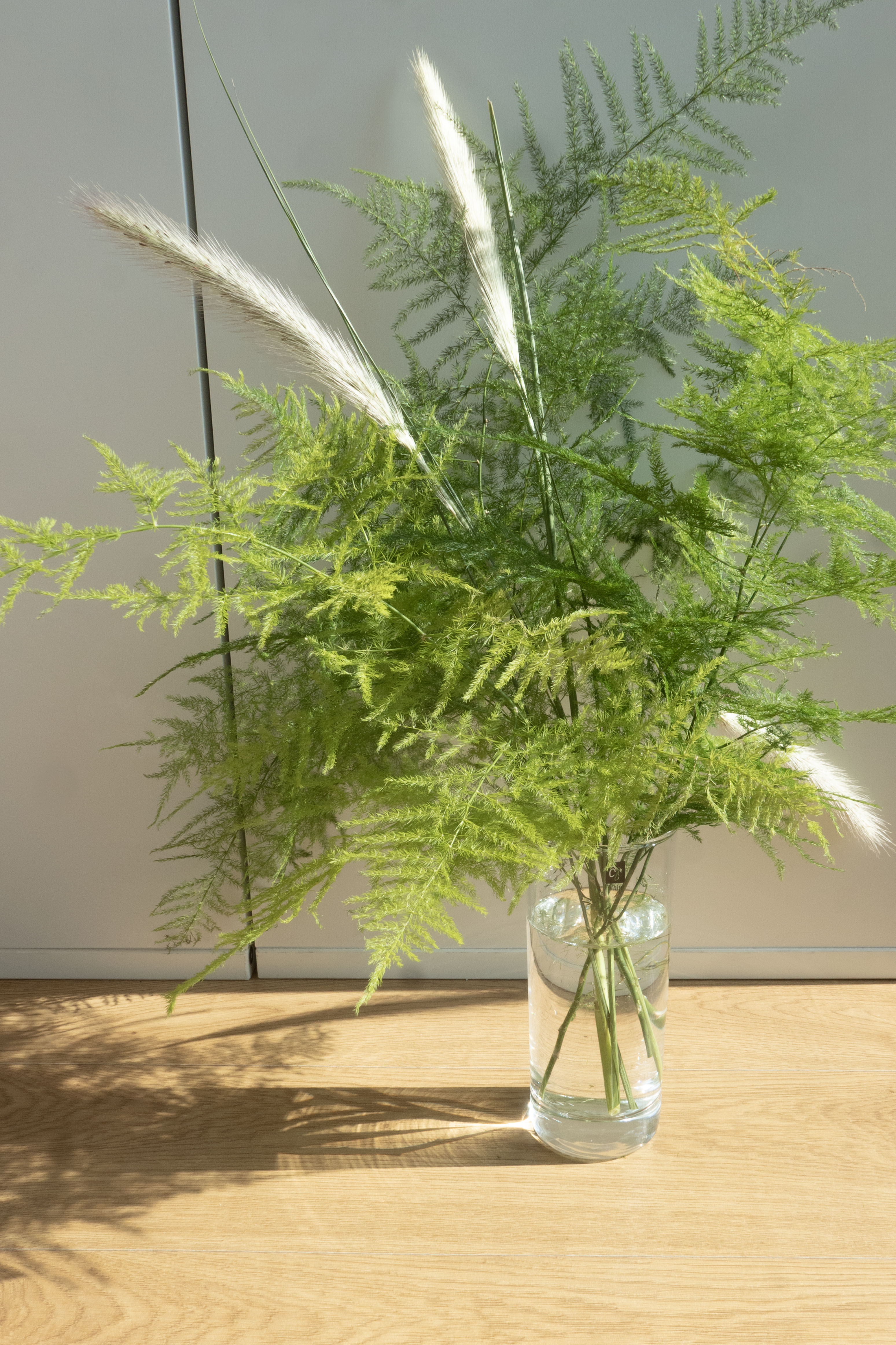 아스파라거스 양이 많이 남아서 유리컵에 한가득 담아보았어요. 작은 숲을 연출해 보고 싶었거든요.