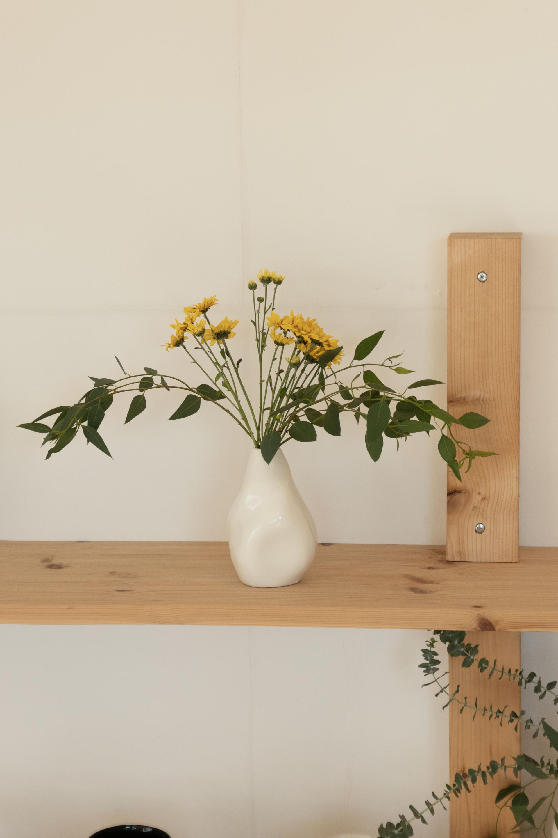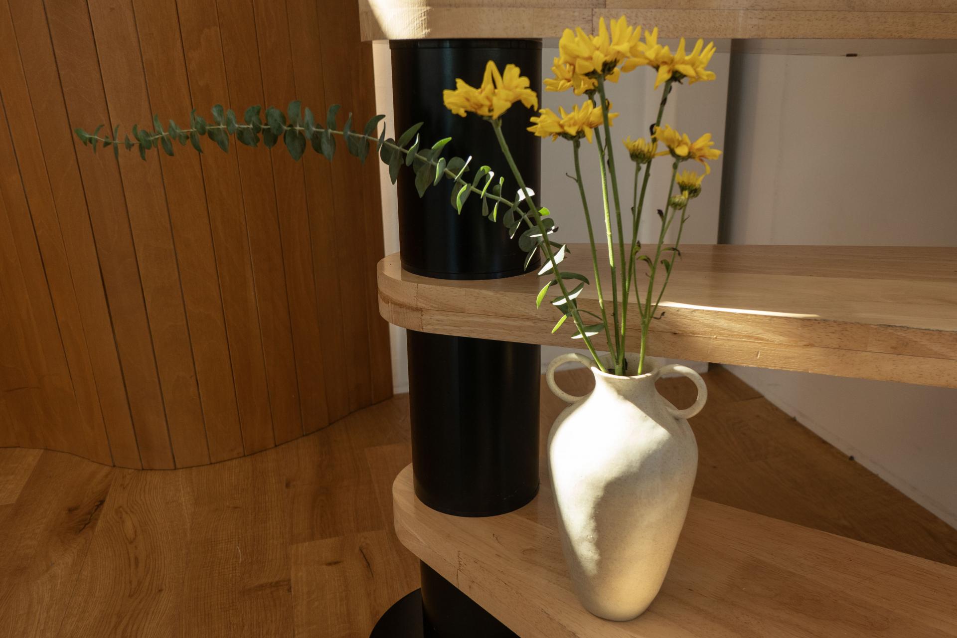 단단하고 묵직한 존재감을 가진 화병이라 그대로 두어도 훌륭한 오브제가 되지만, 꽃을 더하니 마치 전시장에서 마주한 작품 같은 느낌이 들었어요.