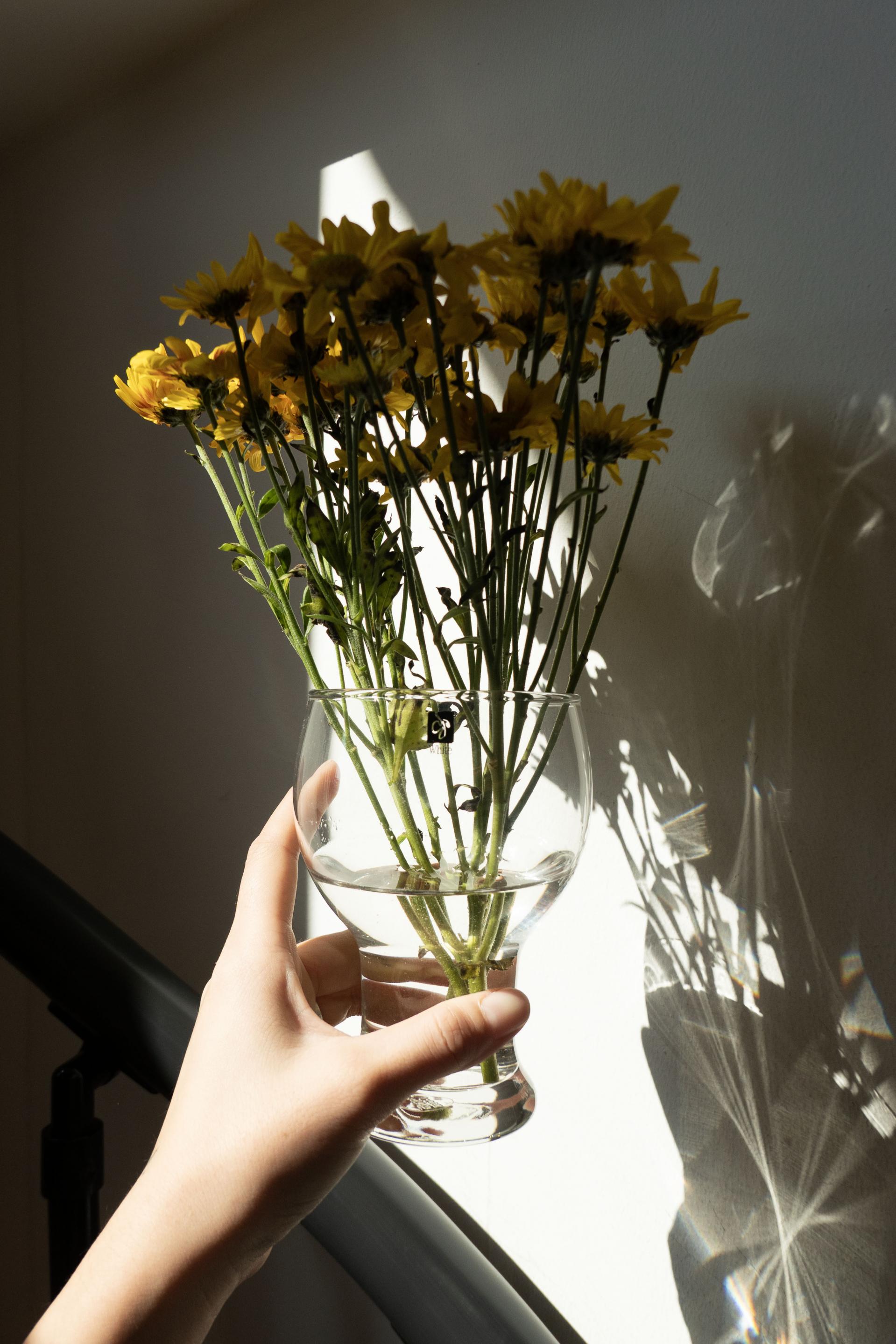 같은 노란 소국을 사용했지만 화병에 따라, 함께하는 식물에 따라 전혀 다른 분위기가 만들어지는 게 참 매력적이지 않나요?