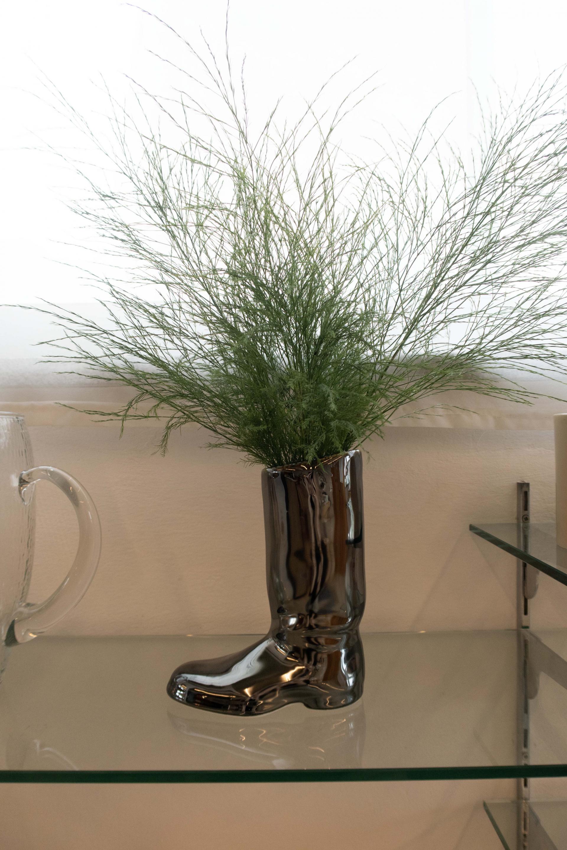 자유분방하게 뻗은 쇠뜨기를 어느 화병과 매치해야 할까 고민했는데 이 부츠 화병이 딱이었어요.