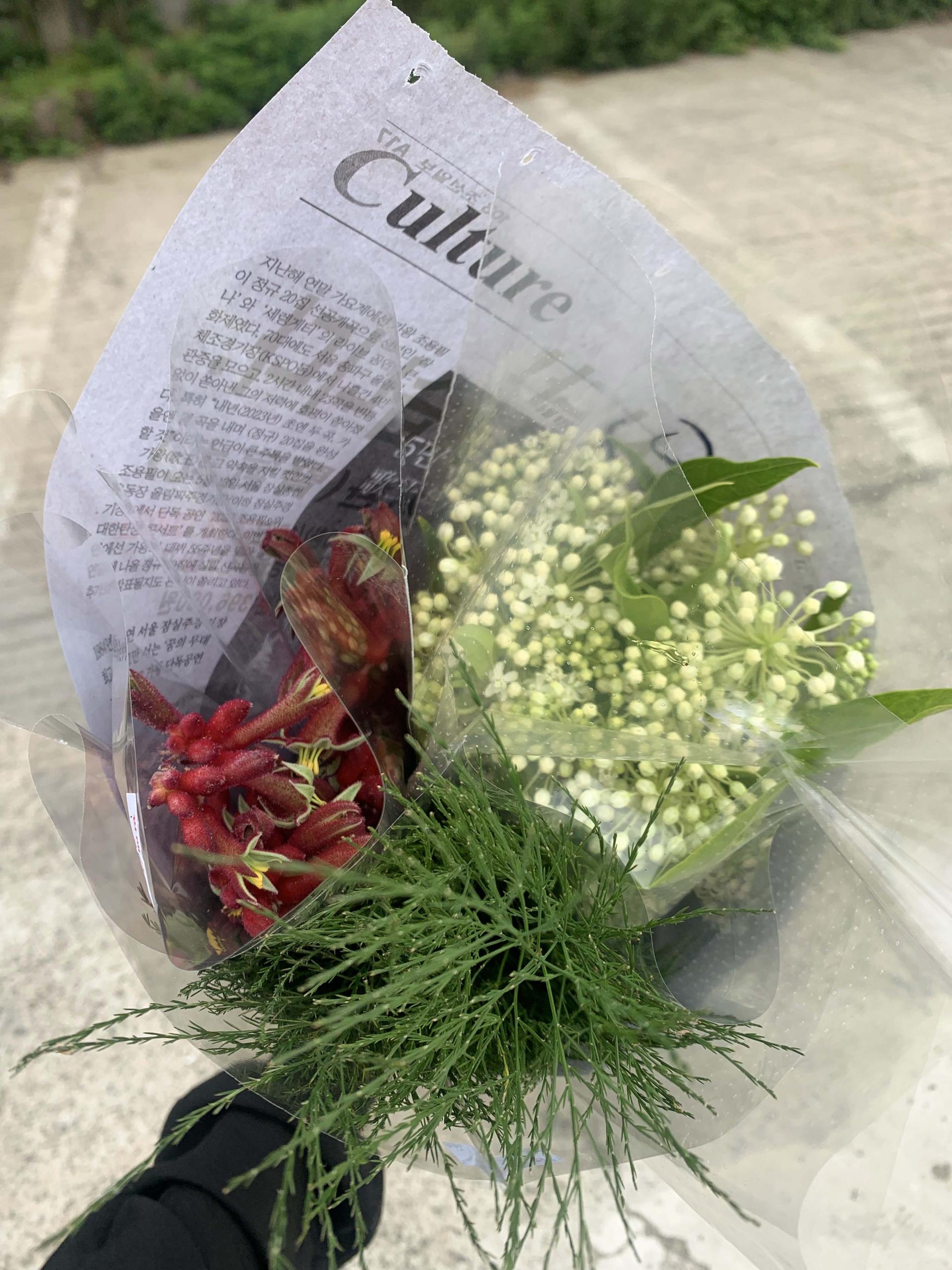 뜨거운 해를 느끼며 출근 전 꽃을 구매했어요.