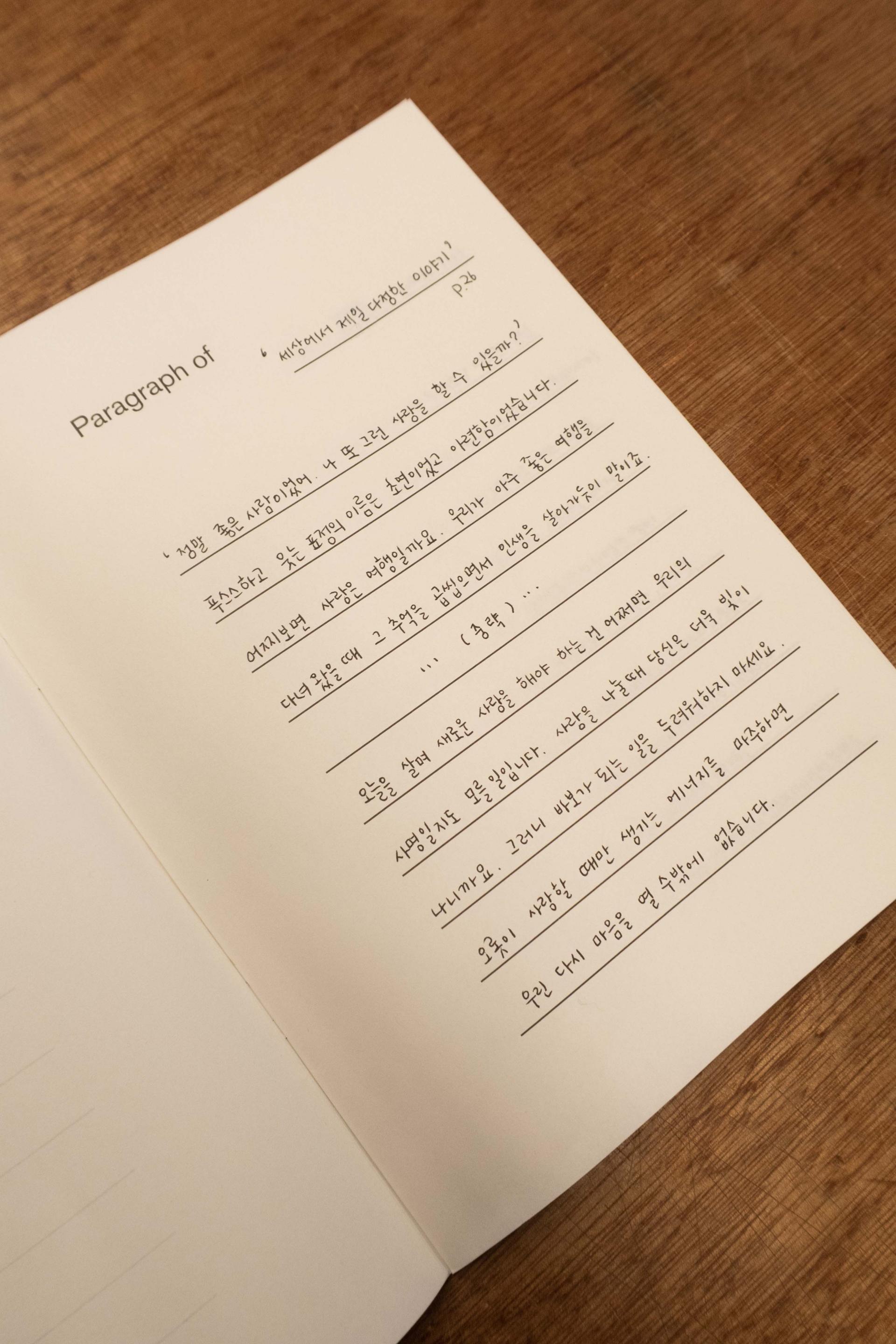 읽은 책 속에서 마음에 와 닿았던 단락을 적는 필사 노트.