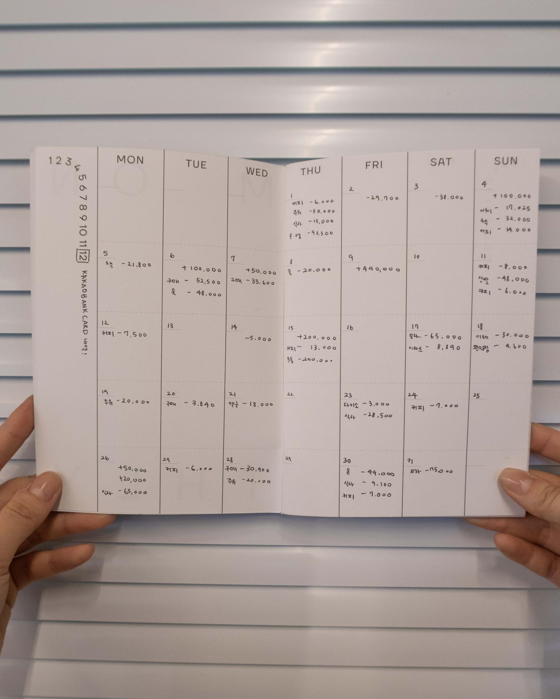 월간 캘린더를 가계부로 활용하기.