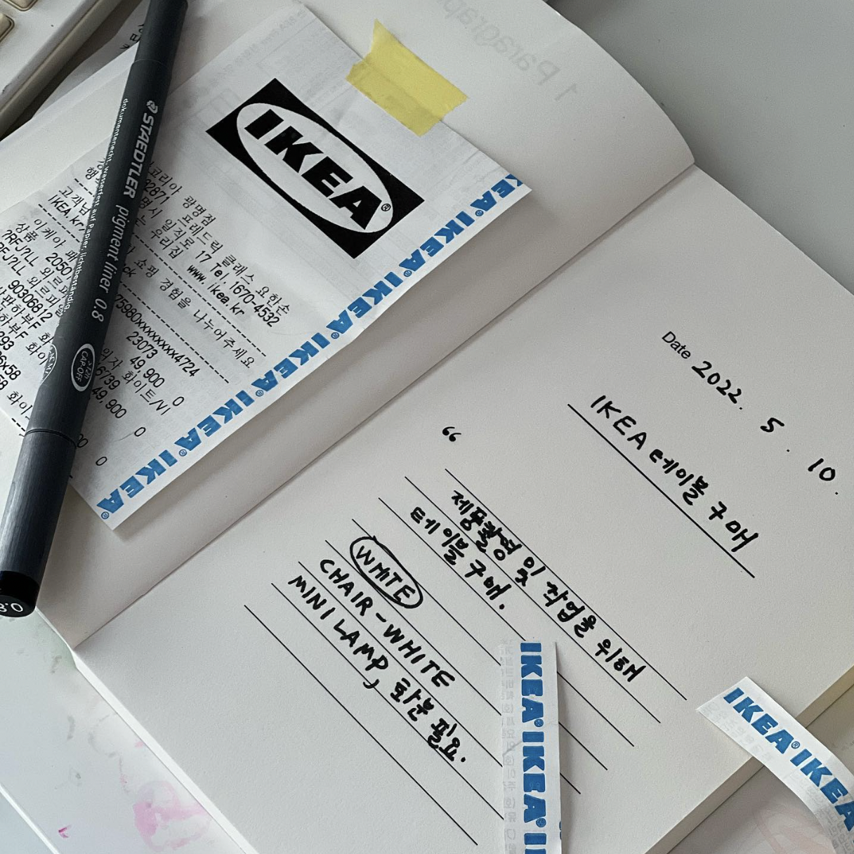 나의 쇼핑 리스트. 옆 빈 공간에는 영수증도 함께 첨부하기. 🧾