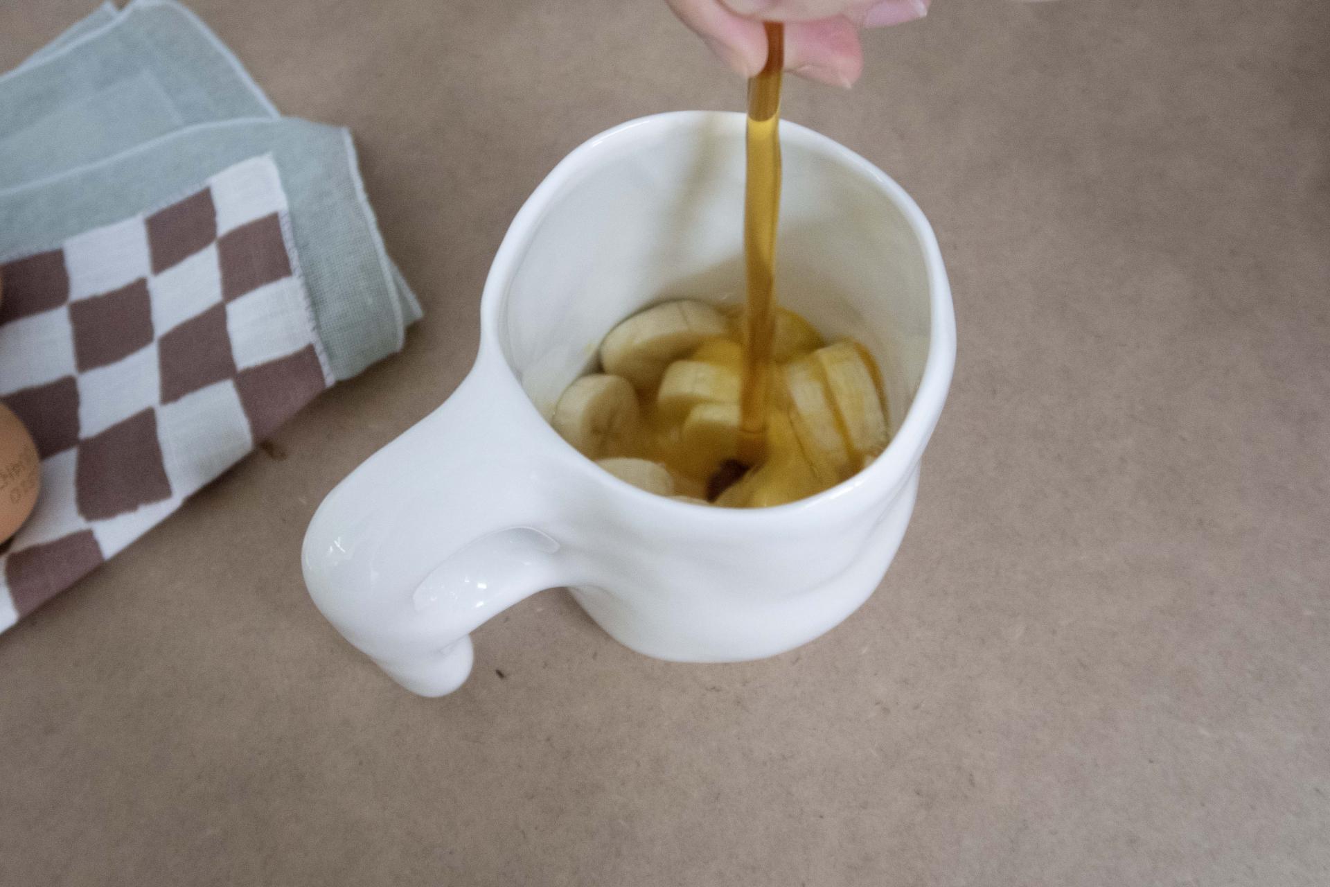 2. 계란 한 개와, 잘게 자른 바나나 한 개를 함께 담아줍니다.